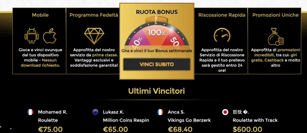 Bonus Settimanale | Ruota per premi | Non necessario | 40x | – |